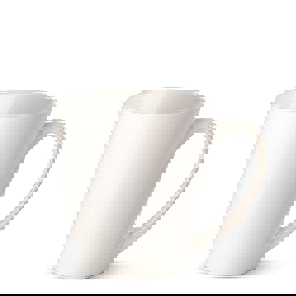 Conische aardewerk mok. Middels sublimatie druktechniek groot rondom en zelfs in fotokwaliteit te bedrukken.