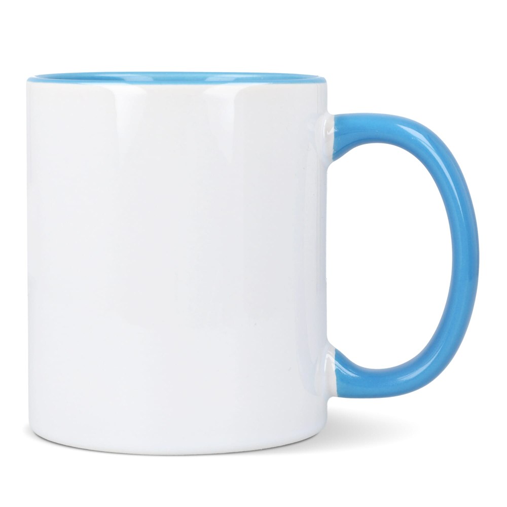 Onze populaire Oslo-mok met gekleurde binnenkant en handvat. Deze mok is speciaal ontworpen voor sublimatie en biedt het perfecte canvas voor gepersonaliseerde ontwerpen die de kleuraccenten aanvullen.