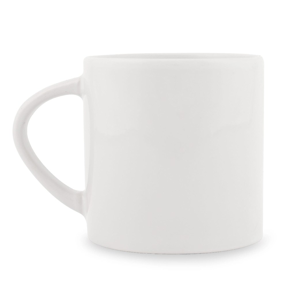 Kleine aardewerk mok. Middels sublimatie druktechniek rondom in zelfs fotokwaliteit te bedrukken. Geschikt voor alle koffie automaten.