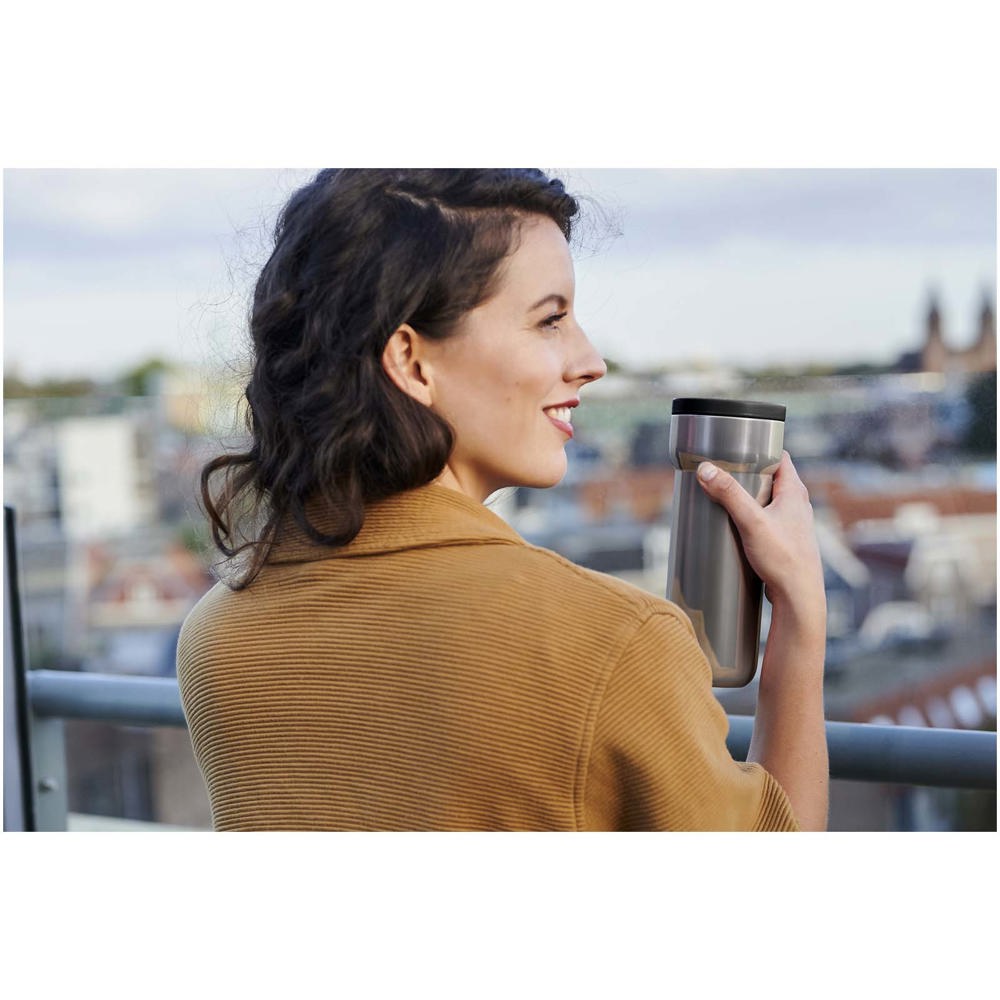 De 375 ml Ellipse geïsoleerde mok van duurzaam roestvrij staal is perfect voor onderweg. Hij houdt je drankje tot 4 uur warm of tot 8 uur koud, ideaal voor je ochtendkoffie of een verfrissende koude drank. De mok is 100% lekvrij, past in bijna elke bekerhouder en is BPA-vrij voor veilig dagelijks gebruik. Handwas wordt aanbevolen om de afwerking mooi te houden.