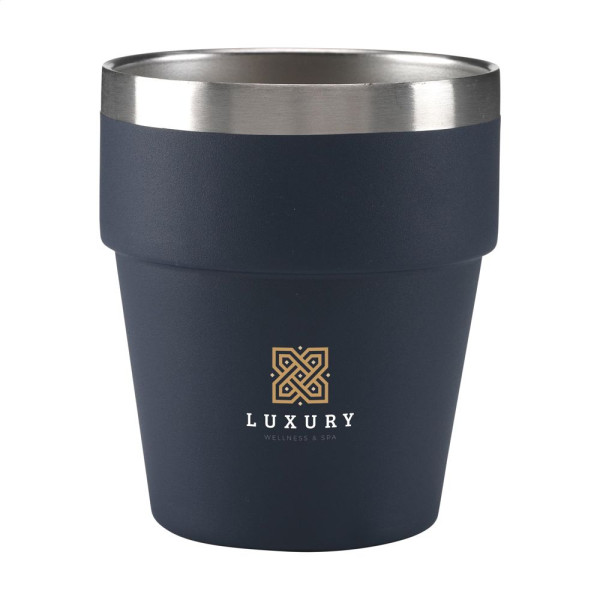 Dubbelwandige beker van 100% gerecycled RVS. Volledig recyclebaar. Deze tijdloze beker is stapelbaar en dus ruimtebesparend. Geschikt voor de meeste koffieapparaten. Niet vaatwasserbestendig. RCS-gecertificeerd. Totaal gerecycled materiaal: 92%. Inhoud 300 ml. RVS kan vele malen gerecycled worden terwijl de kwaliteit van het materiaal grotendeels behouden blijft. Door het gebruik van gerecycled RVS worden minder nieuwe grondstoffen gebruikt. Dit betekent minder energieverbruik en minder gebruik van water. Een verantwoorde keuze.
