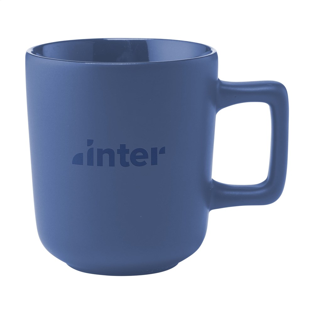 Mok van hoogwaardig keramiek met een opvallend oor. Afgewerkt met een matte buitenzijde en hoogglans binnenzijde. Vaatwasserbestendig. De opdruk is vaatwasmachine getest en gecertificeerd: EN 12875-2. Inhoud 280 ml. OPMERKING: De witte mok kan niet worden voorzien van een lasergravure omdat deze onvoldoende zichtbaar is.