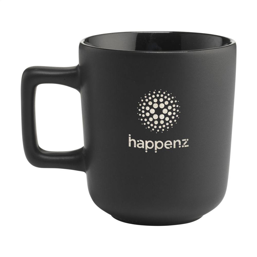 Mok van hoogwaardig keramiek met een opvallend oor. Afgewerkt met een matte buitenzijde en hoogglans binnenzijde. Vaatwasserbestendig. De opdruk is vaatwasmachine getest en gecertificeerd: EN 12875-2. Inhoud 280 ml. OPMERKING: De witte mok kan niet worden voorzien van een lasergravure omdat deze onvoldoende zichtbaar is.