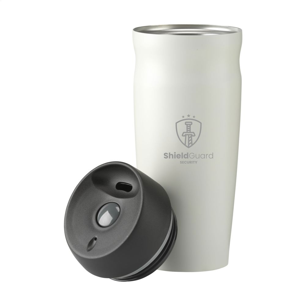 Dubbelwandige, lekvrije thermosbeker van gerecycled RVS, met schroefdop. Met slechts één druk op...meer