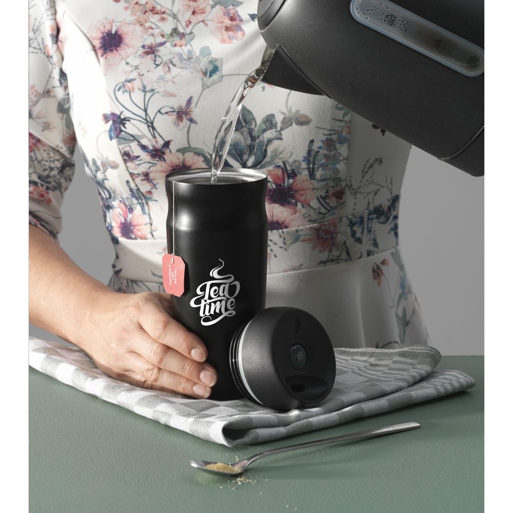 Dubbelwandige, lekvrije thermosbeker van gerecycled RVS, met schroefdop. Met slechts één druk op...meer