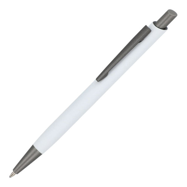 Aluminium balpen met metalen clip en softtouch-afwerking. De balpen wordt geleverd met een blauwe...meer