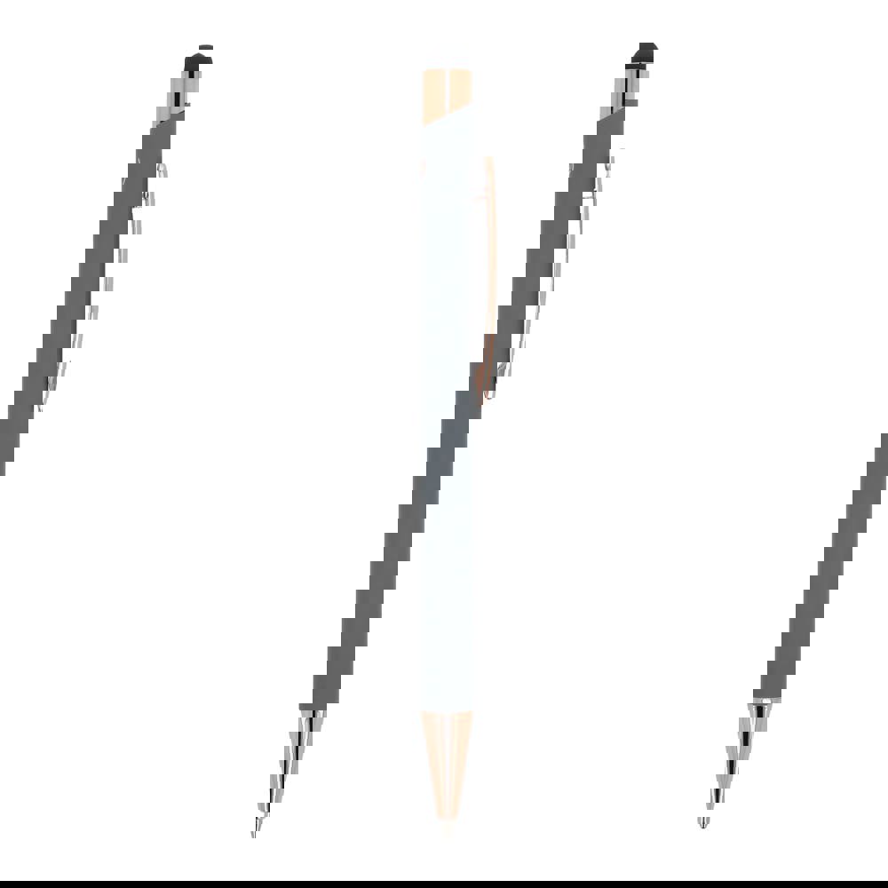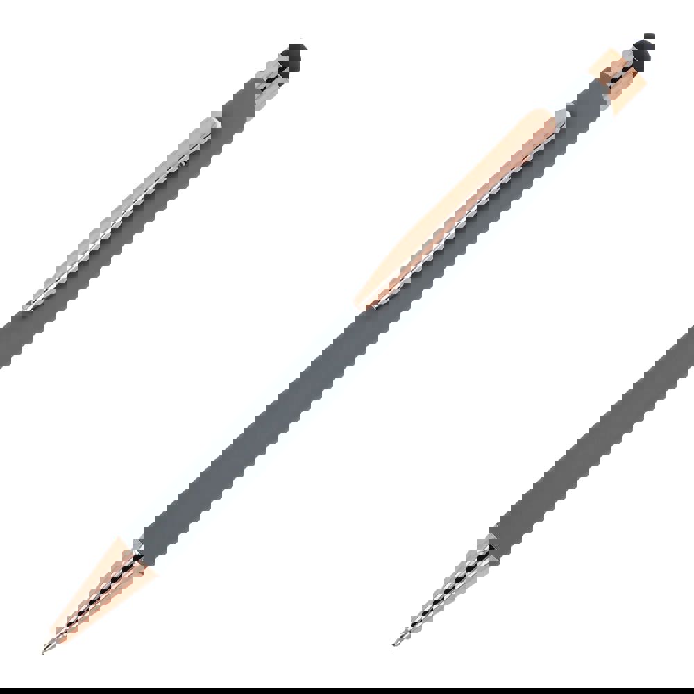 Stijlvolle balpen van gerecycled aluminium met een metalen clip. De rosékleur komt terug in de accenten van de balpen en de lasergraveerkleur. De balpen wordt geleverd met een blauwschrijvende jumbo-vulling.