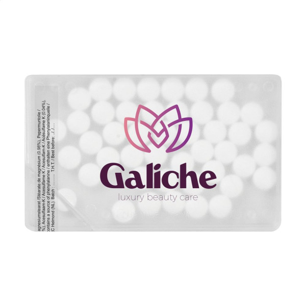 Dispenser met ca. 8 g (50 stuks) suikervrije pepermuntjes.meer