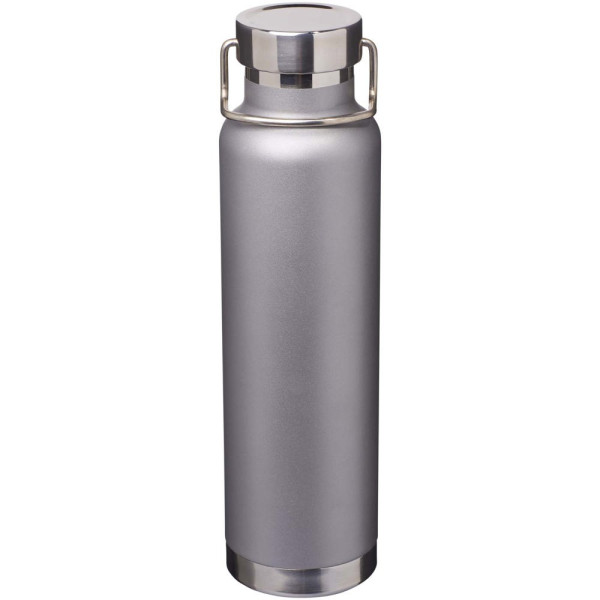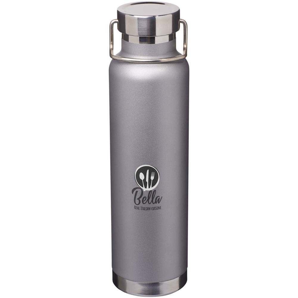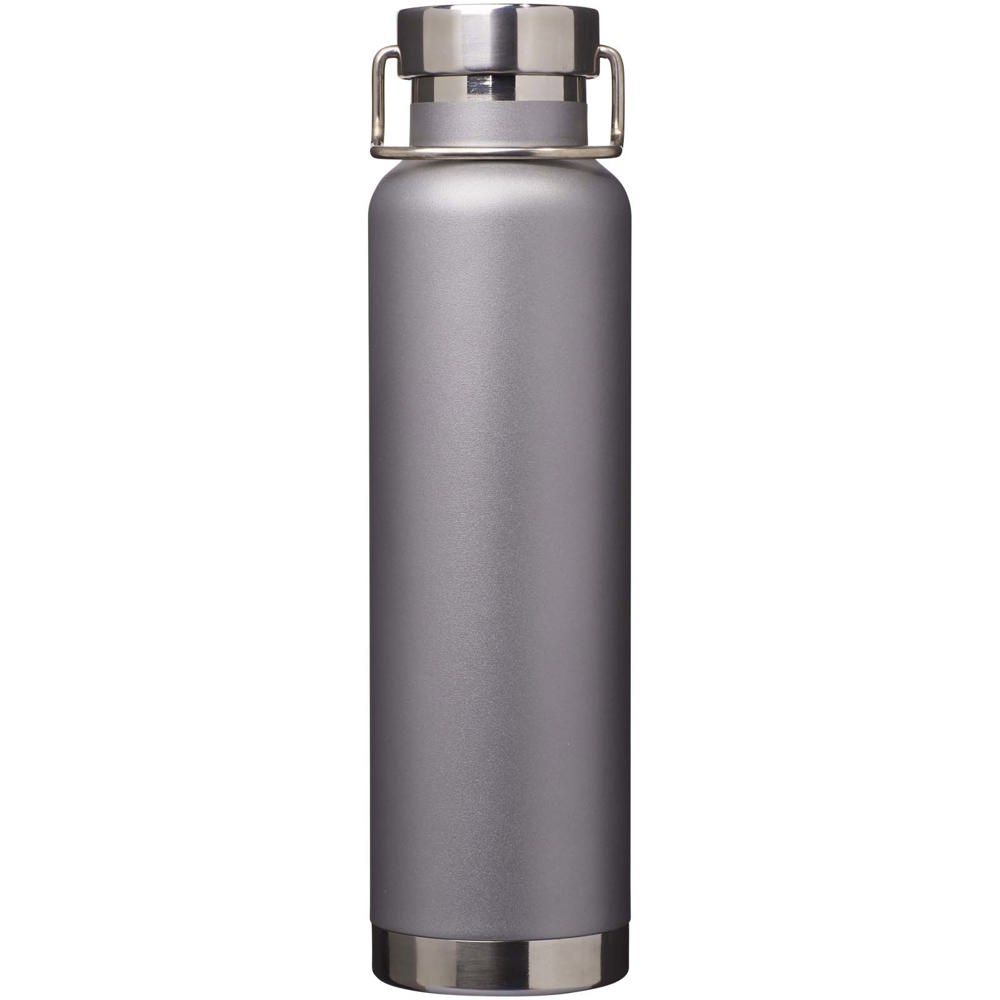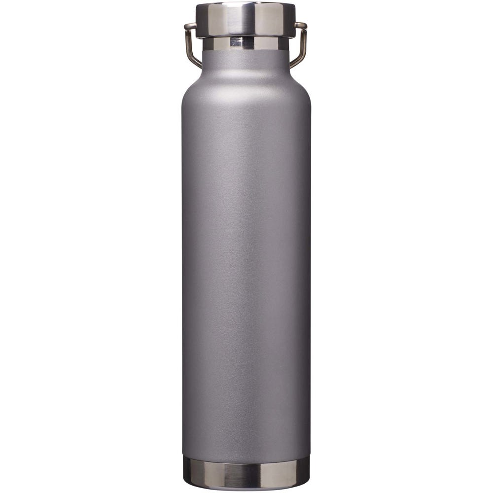 RCS-gecertificeerde dubbelwandige gerecyclede roestvrijstalen fles met koperen vacuümisolatie, waardoor dranken 12 uur warm en 48 uur koud blijven. Voorzien van een schroefdop van gerecycled roestvrij staal met een stevige draaglus. De brede opening maakt vullen en schenken comfortabel. Inhoud: 650 ml. Geleverd in een geschenkverpakking.