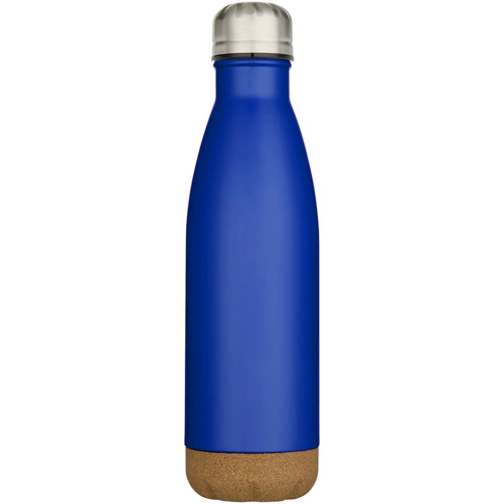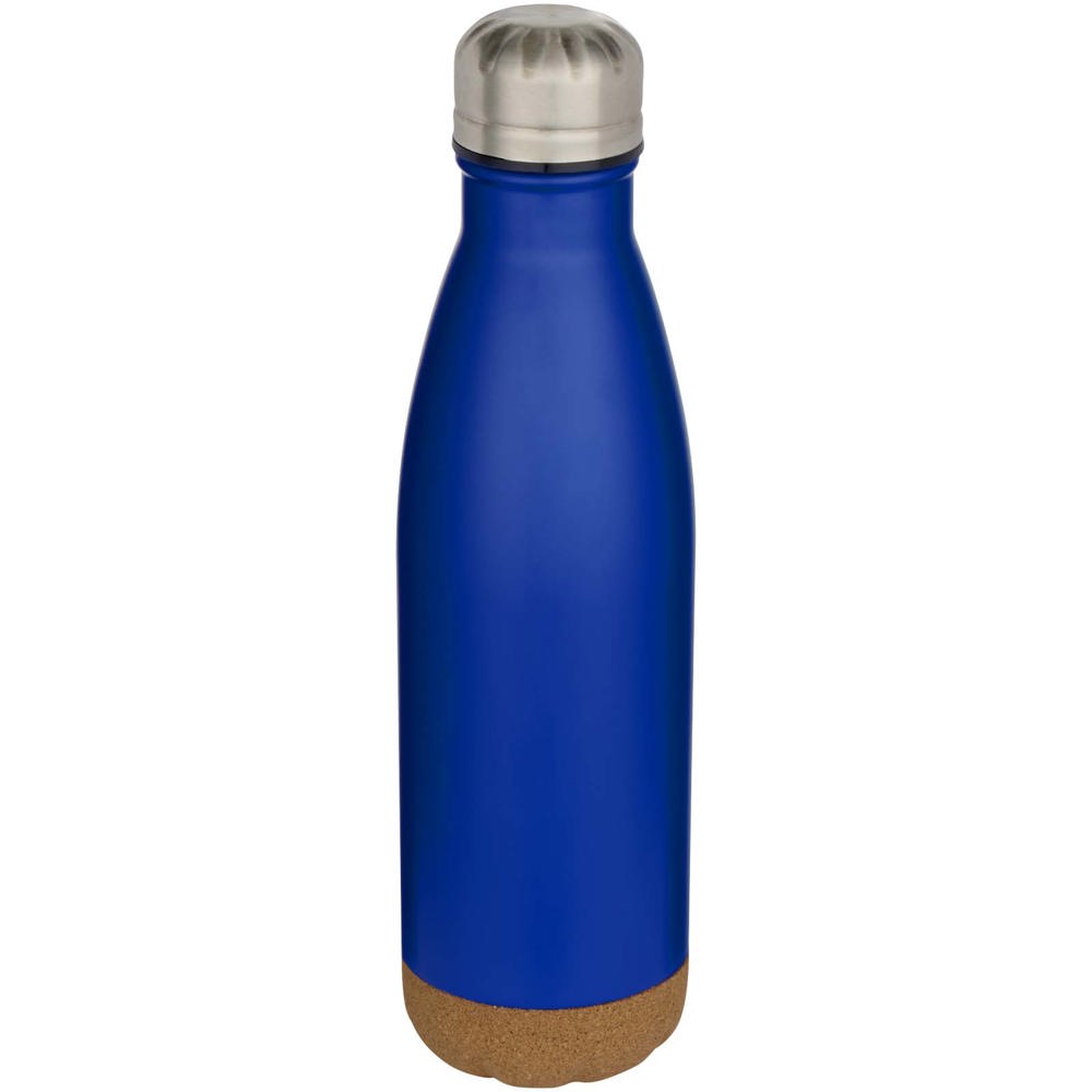 Vacuümgeïsoleerde roestvrijstalen drinkfles met kurken details aan de onderzijde. De dubbelwandige isolatie houdt dranken 12 uur warm en 48 uur koud. Geleverd in een geschenkverpakking van gerecycled karton. Inhoud: 500 ml.