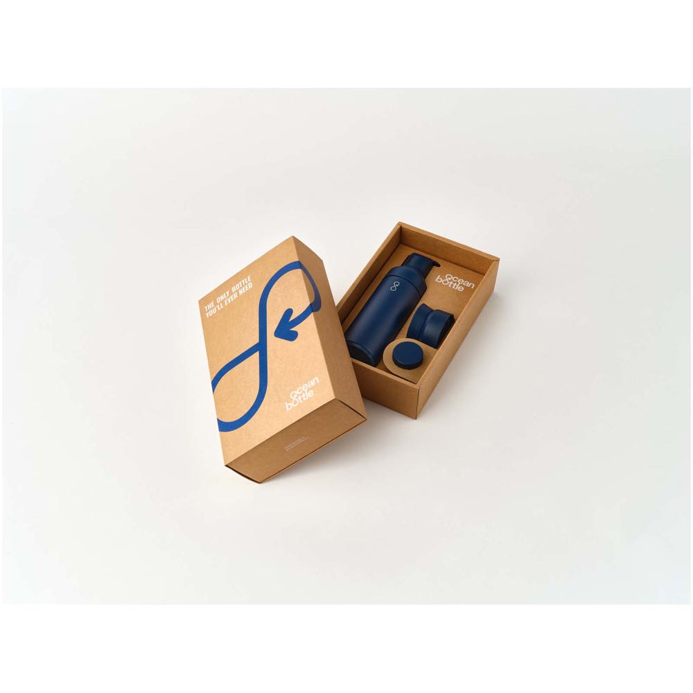 De 500 ml Ocean Bottle geschenkset heeft een uniek modulair dekselsysteem waarmee je moeiteloos schakelt tussen verschillende activiteiten dankzij drie verwisselbare deksels. Deze set bevat de Ocean Bottle 500 ml met het originele deksel voor dagelijks lekvrij drinken, het GO-deksel met afsluitbaar rietje en het brouwdeksel om onderweg van warme dranken te genieten. Dankzij de dubbele openingsfunctie vul, reinig en ijs je de fles eenvoudig. Gemaakt van gerecycled materiaal, vaatwasmachinebestendig en verpakt in een milieuvriendelijke, gerecyclede geschenkverpakking.
