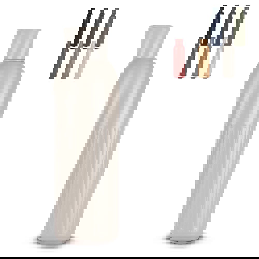 De Sagaform Tekla Push-fles belichaamt Scandinavisch design en dagelijkse functionaliteit. Gemaakt van gerecycled staal met vacuümisolatie en kopercoating: houdt dranken 12 uur warm of 24 uur koud zonder condensatie. De slimme drukdop geeft een sportieve look en is lekvrij. Gepoedercoat, Vaatwasserbestendig en klaar voor het leven onderweg.