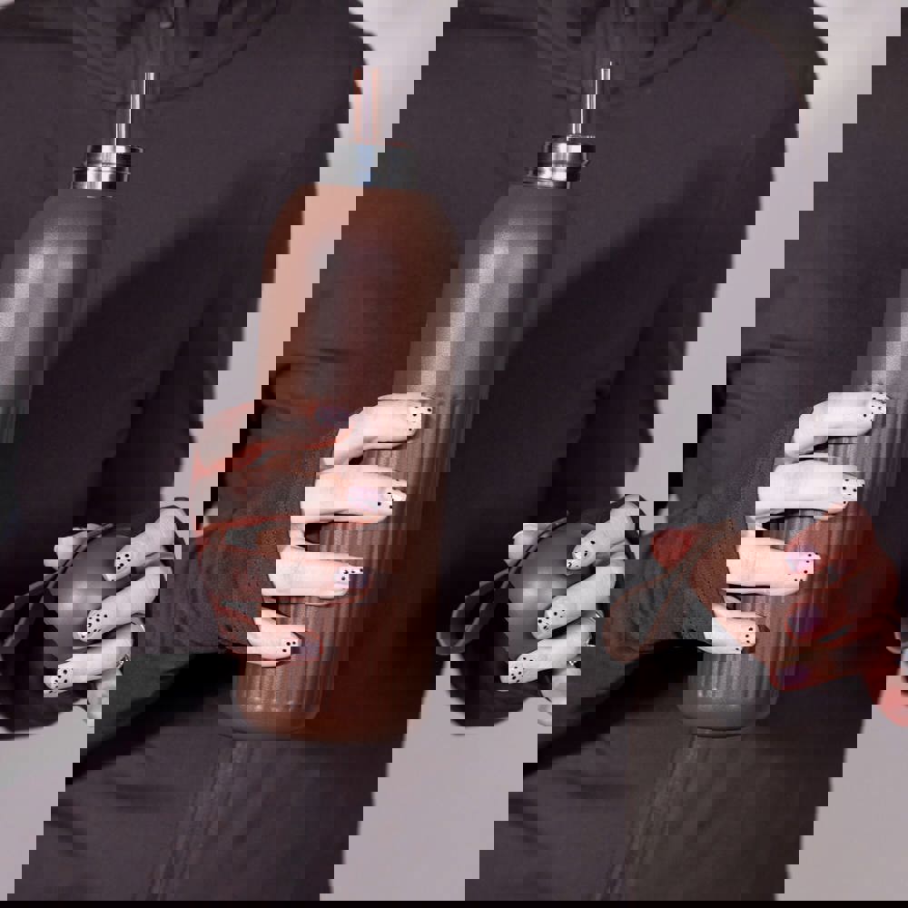 De Sagaform Tekla fles staat voor Scandinavisch design en dagelijks gebruik. Gemaakt van gerecycled staal met vacuümisolatie en kopercoating: houdt dranken 12 uur warm of 24 uur koud zonder condensatie. Verticale strepen, een afgeronde dop van gerecycled plastic en een afneembaar rietje kenmerken het functionele design. Vaatwasserbestendig.