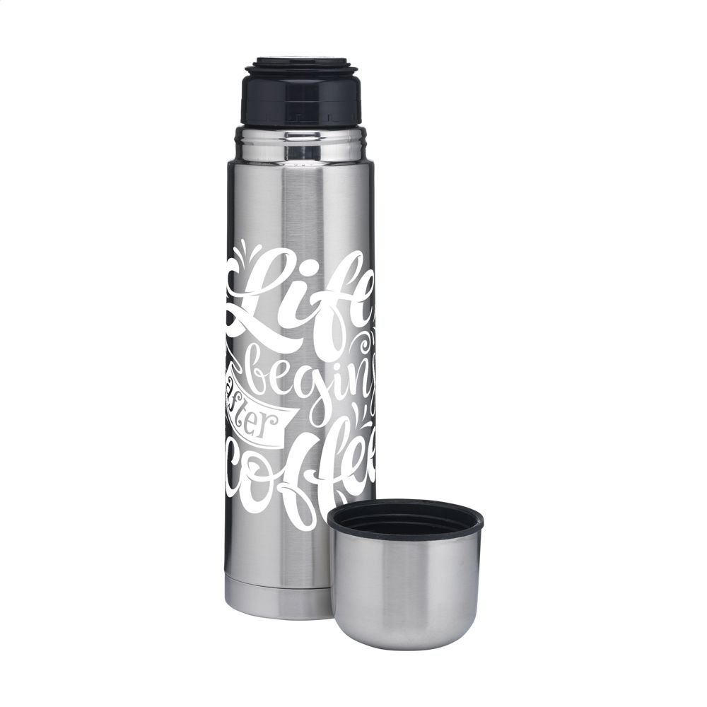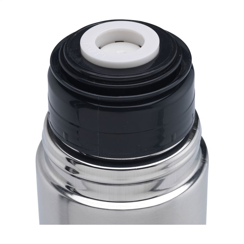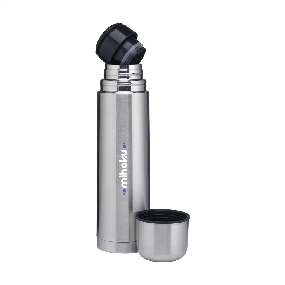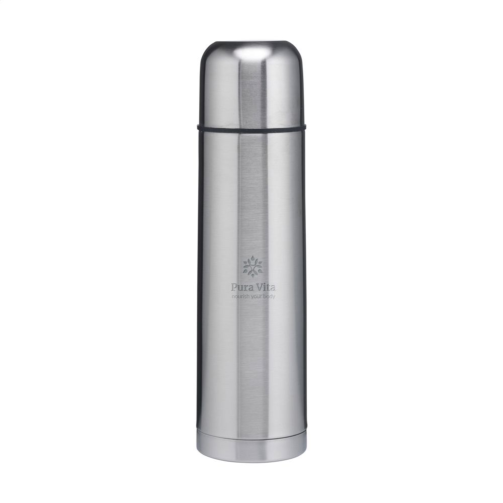 Dubbelwandige, vacuüm geïsoleerde thermosfles van gerecycled RVS. Onbreekbaar en ijzersterk. De vacuümruimte tussen de wanden isoleert de inhoud en houdt dranken lange tijd warm of koud. Met schroefdop/drinkbeker en handig schenksysteem met druksluiting. Lekvrij. Niet vaatwasserbestendig. RCS-gecertificeerd. Totaal gerecycled materiaal: 75%. Inhoud 750 ml. RVS kan vele malen gerecycled worden terwijl de kwaliteit van het materiaal grotendeels behouden blijft. Door het gebruik van gerecycled RVS worden minder nieuwe grondstoffen gebruikt. Dit betekent minder energieverbruik en minder gebruik van water. Per stuk verpakt.