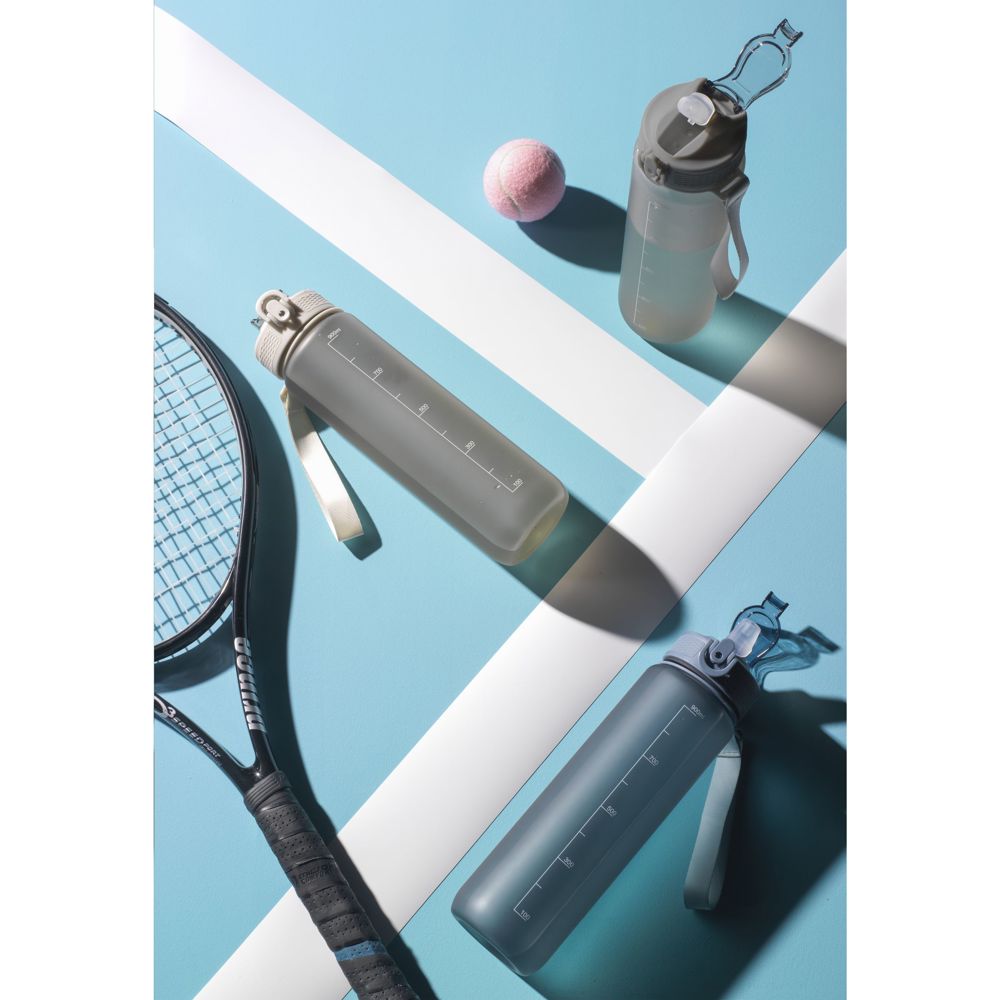 Functionele waterfles gemaakt van gerecycled PET. De schroefdop is voorzien van een drinktuit met rietje, een transparante beschermcap tegen lekken en vuil en een vergrendelsysteem. Met één hand te bedienen en gemakkelijk mee te nemen aan de draag-/polslus. Met weergave van de inhoud in ml en oz. Deze fles is geschikt voor koude dranken en ideaal in gebruik tijdens sportieve activiteiten. Niet vaatwasserbestendig. Inhoud 1.000 ml. RCS-gecertificeerd. Totaal gerecycled materiaal: 66%. Per stuk verpakt.