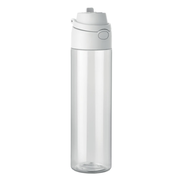 RPET fles met 2-in-1 drink- en rietjesdop met handvat. Lekvrij. Inhoud: 700ml.