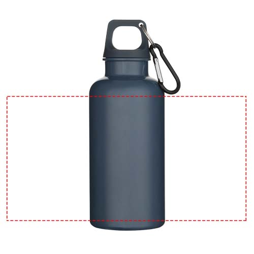 Altijd gehydrateerd blijven is mogelijk met deze duurzame maar toch lichte waterfles van 400 ml, gemaakt van RCS-gecertificeerd gerecycled PET. Het is de perfecte metgezel tijdens het sporten, op dagtrips of op kantoor. De enkelwandige Oregon-fles heeft een draaideksel en biedt voldoende ruimte om elk soort logo toe te voegen. Bevestig de meegeleverde karabijnhaak (niet geschikt om mee te klimmen) stevig aan een tas om verlies te voorkomen. Geproduceerd volgens het door EFSA goedgekeurde PET-recyclingproces.