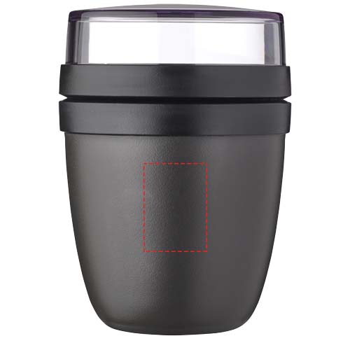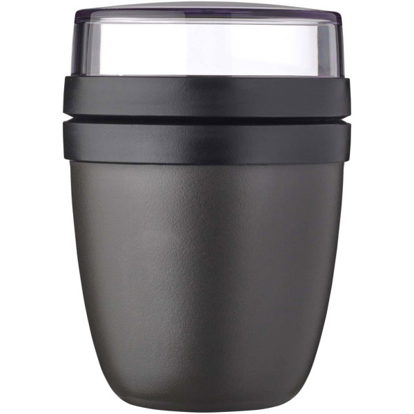 De Ellipse Mini-lunchpot is ideaal voor verschillende snacks, zoals yoghurt met muesli of soep met croutons. Dankzij de twee slimme compartimenten in één stevige container blijven je ingrediënten netjes gescheiden. Door het compacte formaat past hij gemakkelijk in je schooltas voor een snelle en handige maaltijd. Het bovenste transparante bakje heeft een inhoud van 120 ml, perfect voor zo’n 50 gram muesli of fruit, en het onderste bakje biedt 300 ml ruimte. Lekvrij, vaatwasmachinebestendig en volledig BPA-vrij.