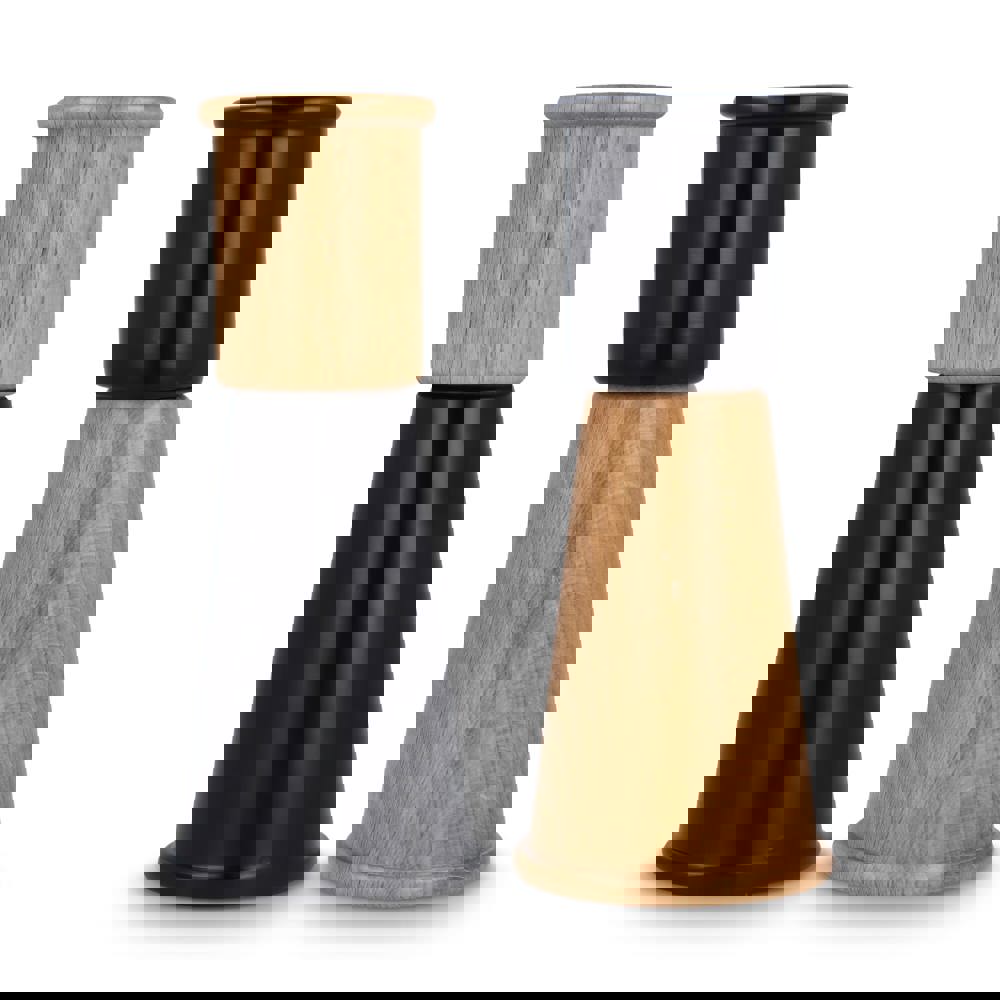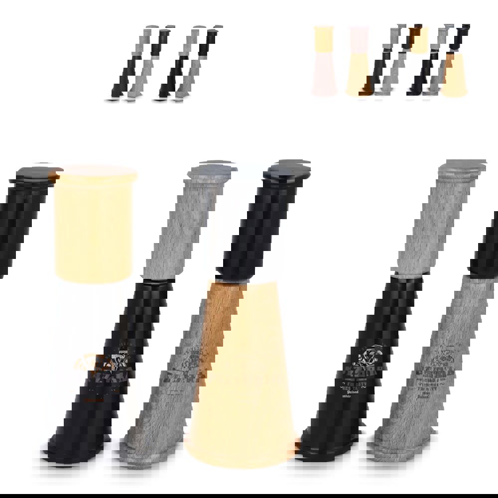 De Sagaform Gurken set bestaat uit twee houten molens, een voor zout en een voor peper, ontworpen door Daniel Enoksson. Geïnspireerd door berglandschappen, biedt hun conische vorm balans en aantrekkingskracht. Ze zijn 15 cm hoog, gemaakt van gecertificeerd beukenhout met duurzame keramische maalschijven, met instelbare maalgraad en verpakt in een luxe geschenkkoker..