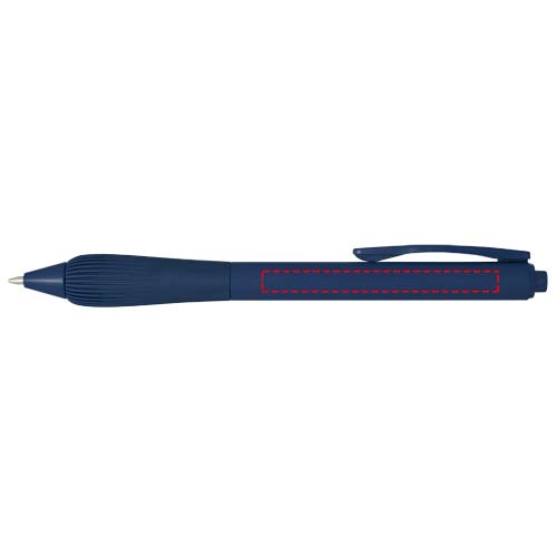 Balpen van gerecycled plastic met een rubberen houder en grip van TPR. Inktkleur: Blauw. Schrijflengte: 1000 meter. Stiftmaat: 1,0 mm.