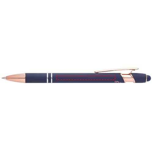 De Nanna balpen met roségouden afwerking heeft een houder van gerecycled aluminium met een siliconen touch stylus. Gerecycled aluminium vermindert de hoeveelheid afval op stortplaatsen en draagt bij aan het behoud van natuurlijke hulpbronnen, met als doel de uitstoot van broeikasgassen te verminderen. Inktkleur: Blauw. Schrijflengte: 800 meter. Stiftmaat: 1,0 mm.