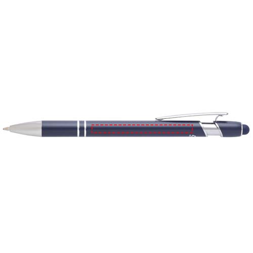De Kish balpen met zilveren afwerking heeft een houder van gerecycled aluminium met een siliconen touch stylus. Gerecycled aluminium vermindert de hoeveelheid afval op stortplaatsen en draagt bij aan het behoud van natuurlijke hulpbronnen, met als doel de uitstoot van broeikasgassen te verminderen. Inktkleur: Blauw. Schrijflengte: 800 meter. Stiftmaat: 1,0 mm.