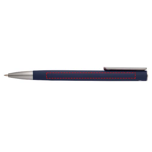 Balpen met een houder van gerecycled aluminium en een zilverkleurige clip van ABS-plastic. Inktkleur: Blauw. Schrijflengte: 800 meter. Stiftmaat: 1,0 mm.