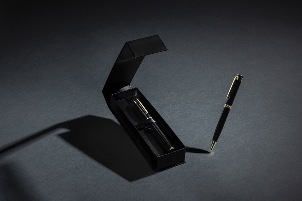 Verhoog je schrijfervaring met de Swiss Peak Luca RCS Recycled Brass Deluxe Pen Set. Ontworpen met een gevoel voor verfijning, bevat deze set slanke zwarte pennen met gouden accenten, waaronder het bovenste deel, de bovenring, de clip, de middenring en de punt. Gemaakt van 55% RCS-gecertificeerd gerecycled messing, bieden deze pennen zowel elegantie als duurzaamheid. De balpen werkt met een draaisysteem en bevat een navulling met blauwe inkt, die 1,0 mm breed schrijft voor maximaal 1200 m. De doppenpen beschikt over blauwe gel-inkt en biedt 800 m soepel schrijven in dezelfde breedte van 1,0 mm. Beide pennen zijn afgewerkt met een stalen clip en zijn gegraveerd met het Swiss Peak-logo op de middenring. Geleverd in een premium geschenkdoos, straalt deze set luxe en stijl uit.