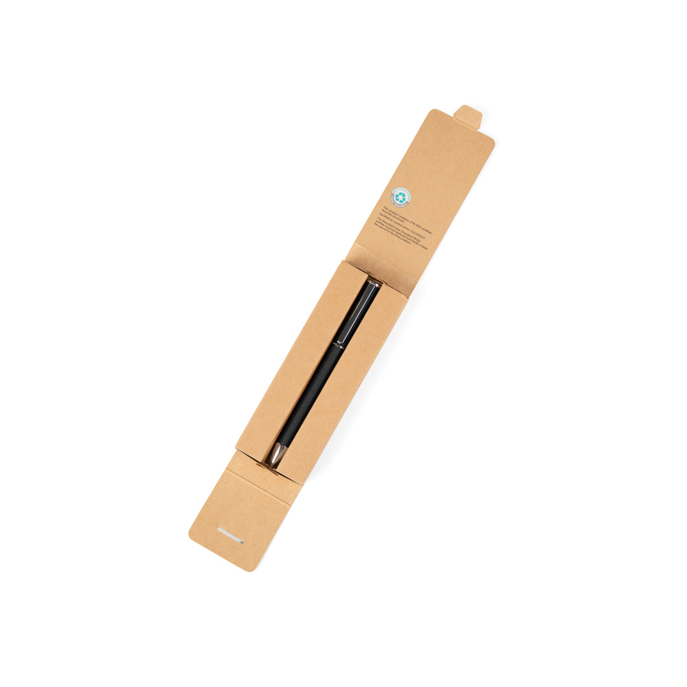 Een strak schrijfinstrument met een draaimechanisme en documentgebaseerde blauwe inkt, met een schrijflengte van ongeveer 1200 meter en een schrijfbreedte van 1,0 mm. Gemaakt met een gerecyclede aluminium vat, messing onderdelen en PU-materiaal. De Timo-serie biedt minimalistische bureauaccessoires gemaakt van RCS-gecertificeerde gerecyclede materialen, waarbij elegant ontwerp wordt gecombineerd voor een moderne werkplek-esthetiek. Gecertificeerd volgens RCS (Recycled Claim Standard), RCS-certificering garandeert dat de gehele toeleveringsketen van gerecyclede materialen is gecertificeerd. Het totale gerecyclede gehalte is gebaseerd op het totale productgewicht. Dit product bevat 27% RCS-gecertificeerd gerecycled aluminium.