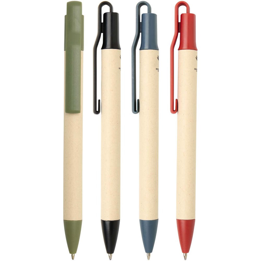 Liliana click-action balpen gemaakt van suikerrietpapier. Inktkleur: blauw. Puntgrootte: 1,00 mm. Schrijfduur: 1000 meter.