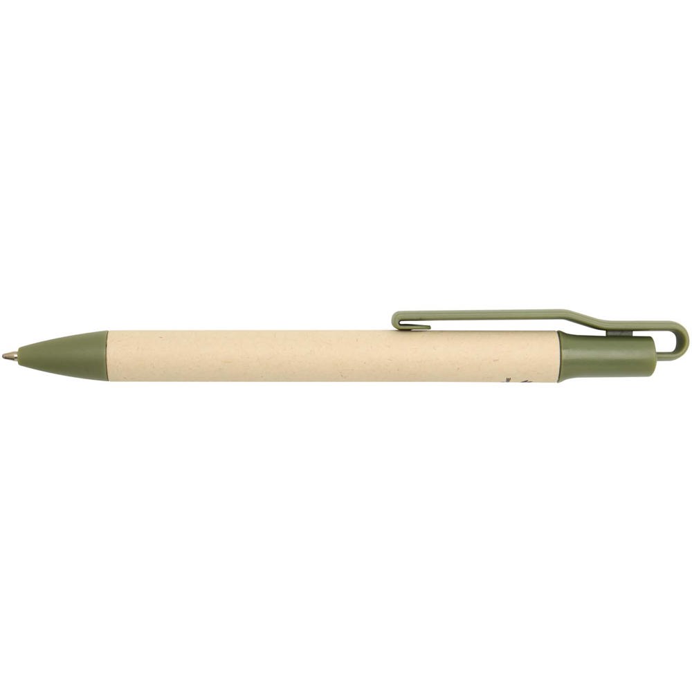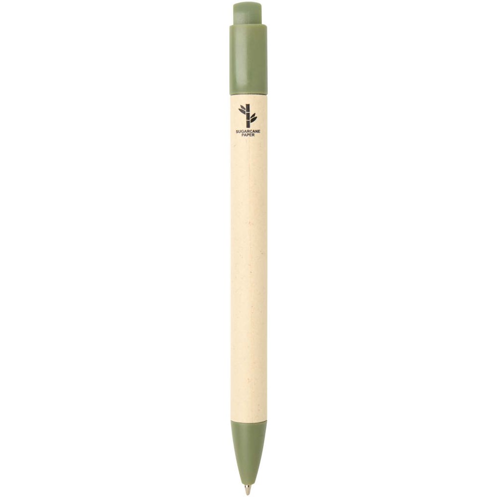 Liliana click-action balpen gemaakt van suikerrietpapier. Inktkleur: blauw. Puntgrootte: 1,00 mm. Schrijfduur: 1000 meter.