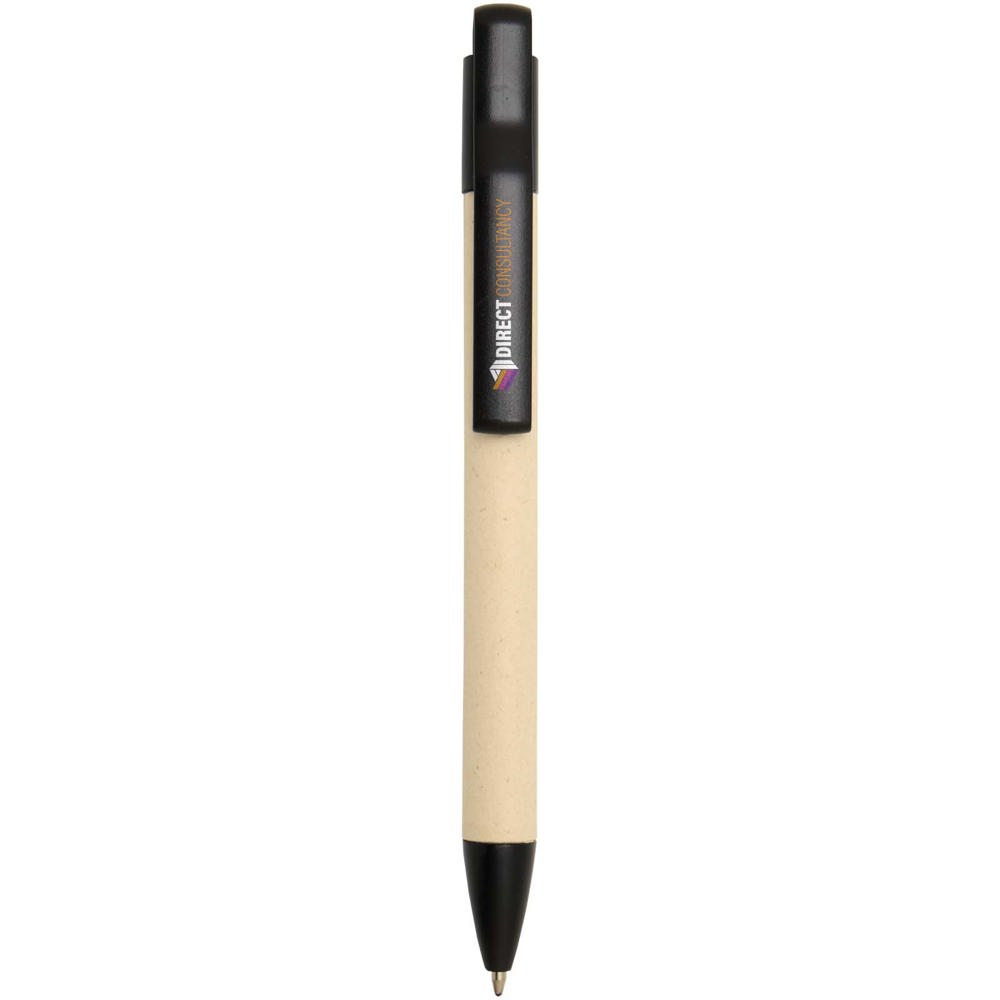 Liliana click-action balpen gemaakt van suikerrietpapier. Inktkleur: blauw. Puntgrootte: 1,00 mm. Schrijfduur: 1000 meter.