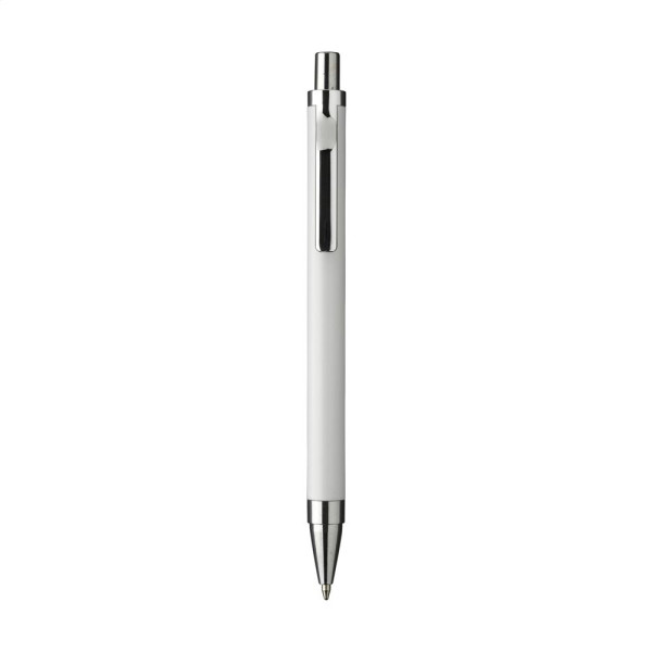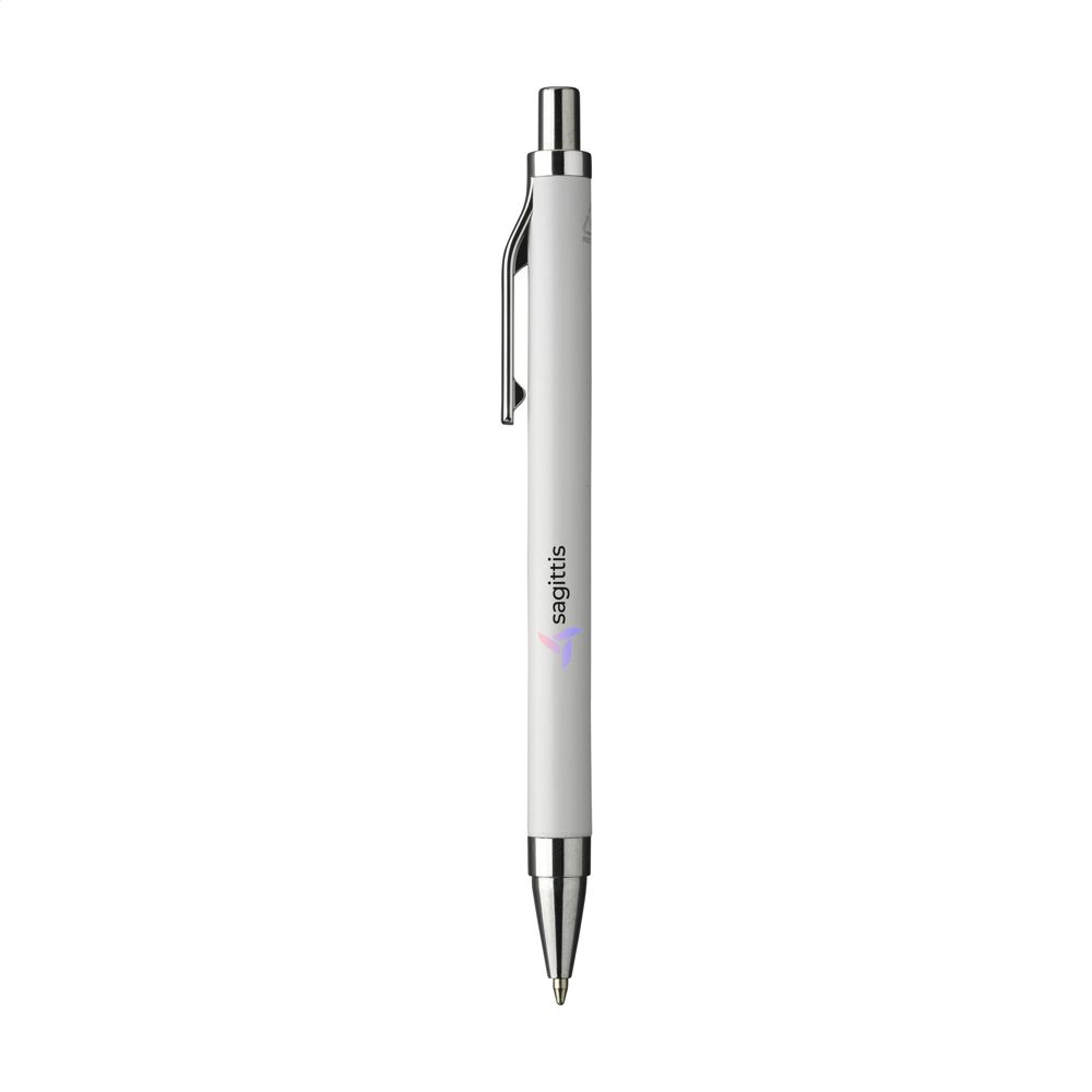 Modieuze, blauwschrijvende balpen met een houder van 100% gerecycled aluminium, afgewerkt met een matte finish. Met fraai gevormde metalen clip en een houder uit één geheel. RCS-gecertificeerd. Door het gebruik van gerecycled aluminium worden er minder nieuwe grondstoffen gebruikt tijdens de productie van dit product. Dit betekent minder energieverbruik en minder gebruik van water.