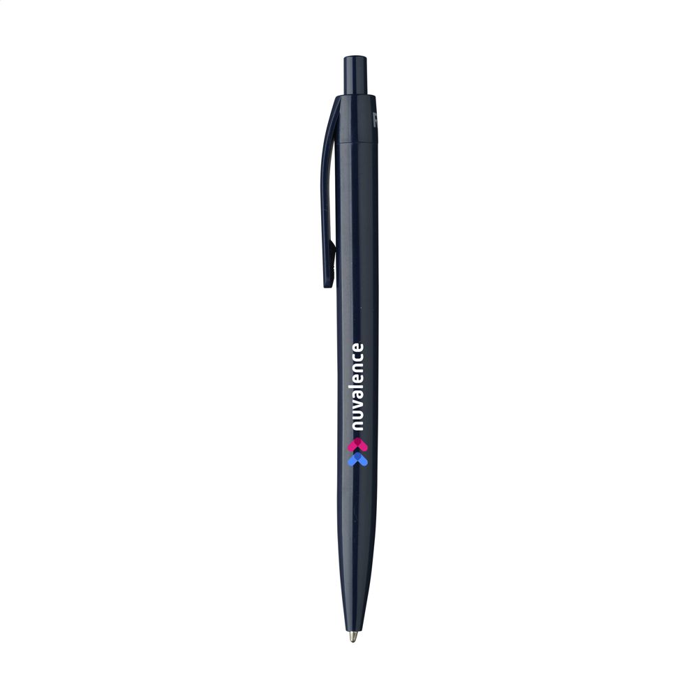 Blauwschrijvende balpen met houder uit één geheel. Zeer geschikt voor een royale opdruk.