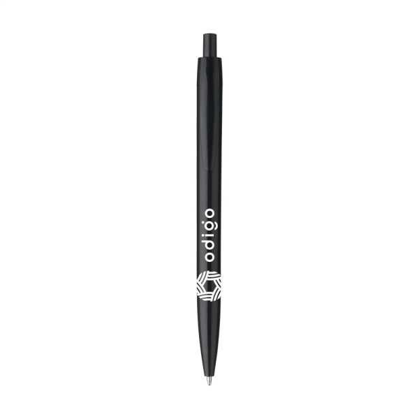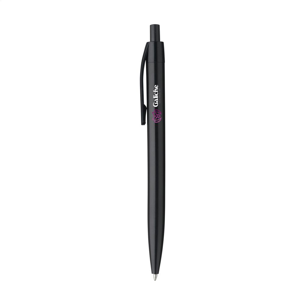 Blauwschrijvende balpen met houder uit één geheel. Zeer geschikt voor een royale opdruk.
