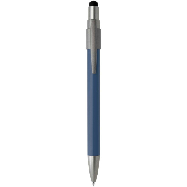 Balpen met stylus en fidget spinner — een combinatie van functionaliteit en speels design. De pen is gemaakt van RCS-gecertificeerd gerecycled aluminium, met een soepel drukmechanisme en stylus-tip voor gebruik op touchscreens. De ingebouwde fidget spinner bovenop zorgt voor een stressverlichtend effect (geactiveerd met een simpele tik). Inktkleur: blauw. Schrijflengte: 1000 meter.