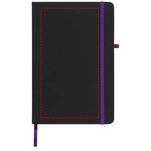 Het Noir-notitieboek heeft een harde PU omslag wat zacht aanvoelt voor een tastbare afwerking. Elk notitieboek heeft een gekleurd sluitbandje, penlus en bladwijzer. Het notitieboek bevat 96 bladen (70g/m2) crèmekleurig lijntjespapier.
