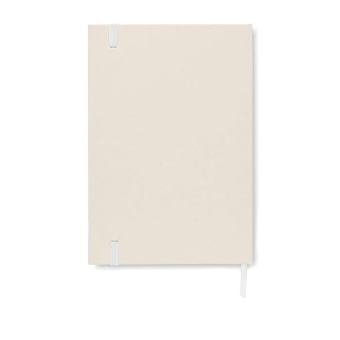 A5 notitieboekje met harde kaft gemaakt van 70% gerecycled melkpak en 30% gerecycled papier met 160 gelinieerde pagina's (80 vel 80 grams). Ingebonden. Elastische sluitingsband, bladwijzer met lint.