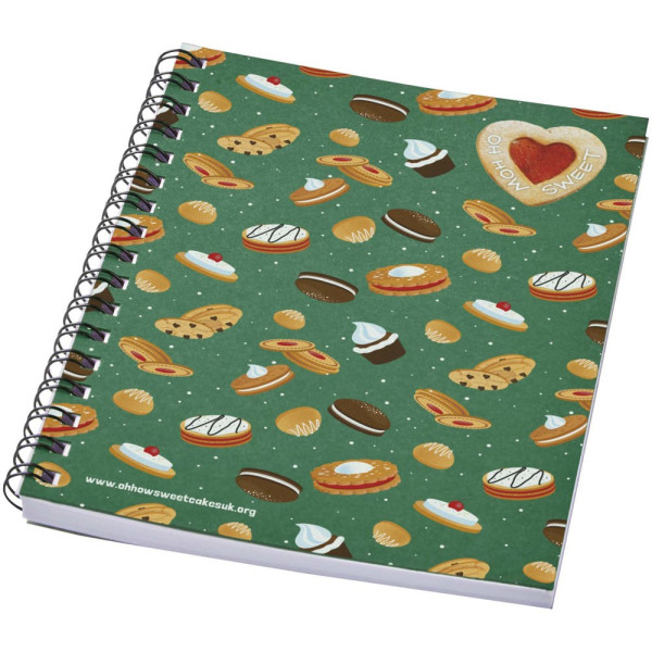 Geef je notities wat kleur met dit A6 spiraal notitieboek. Het bevat 50 vellen blanco 80 g/m2 gerecycled papier en een 320 g/m2 kartonnen cover in verschillende kleuren. Je kunt de pagina's van dit veelzijdige notitieboekje aanpassen aan elk gewenst ontwerp - dus of je nu gelinieerd papier, vierkanten of stippen wilt - alles is mogelijk! Vervaardigd met verantwoord geproduceerde materialen. Gemaakt in het Verenigd Koninkrijk.