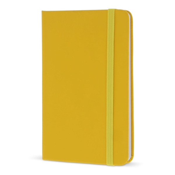 Klassiek ontworpen PU-notitieboek met bijpassende elastische band en lint. 96 vellen wit gelinieerd papier.