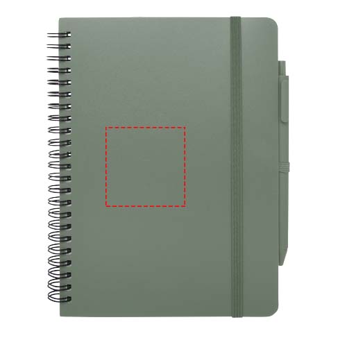 Het Thalaasa A5 notitieboek met harde kaft is gemaakt van ocean-bound plastic en heeft 80 gelinieerde vellen crèmekleurig papier van 70 g/m². Het notitieboek heeft afgeronde hoeken, een elastische sluiting en een pennenlus. De balpen met zwarte inkt is ook gemaakt van gerecycled plastic uit de oceaan. Schrijflengte: 1000 meter. Stiftmaat: 1,0 mm.