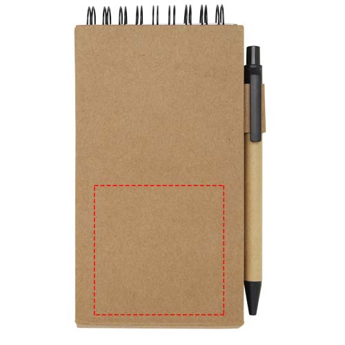 Sticky kladblok met balpen Het kladblok heeft 30 witte vellen van 70 g/m2 gelinieerd papier (8 x 12 cm). Het bevat ook 25 veelkleurige (5 x 1,2 cm) en 25 gele (7,5 x 7,5 cm) sticky notes, beide typen met 70 g/m2 papier. De houder van de balpen is gemaakt van gerecycled papier. Inktkleur: zwart. Schrijflengte: 1000 meter. Stiftmaat: 1,00 mm.