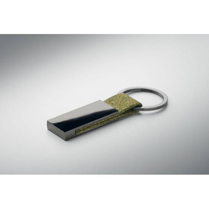 Set van een hardcover A5 notitieboek met 160 gelinieerde pagina's van gerecycled papier (80 vellen/70g/m²), een metalen balpen met draaimechanisme en een sleutelhanger. Gemaakt van 20% theedrab, 30% kurk en 50% polykatoen. Metalen detail op de elastische band. FSC®-certified | FSC MIX CREDIT, N7.1, FSC-C213206