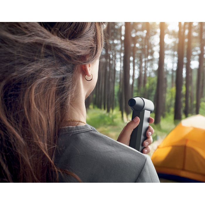 Krachtige ventilator. Draagbare turboventilator met 3 LED-verlichting en 4 standen voor een windsnelheid tot 130.000 tpm. Windsnelheid 35m per seconde. Ingebouwde oplaadbare batterij van 4000 mAh. Je kunt dit apparaat gebruiken als stofzuiger, blazer, ventilator of föhn.