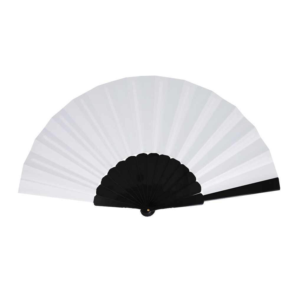 Waaier van kunststof en polyester. Verkrijgbaar in verschillende felle kleuren, ideaal voor buiten evenementen en hete zomerdagen.