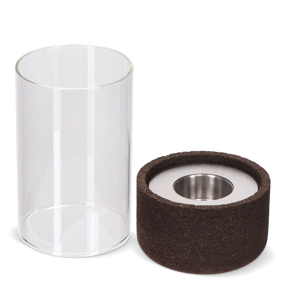 De textuur van kurk creëert spanning en dynamiek, vooral in contrast met andere, meer fragiele materialen. De Dante kaarslantaarn is gemaakt van kurk en glas. Het ultieme kenmerk is dat hij kan worden aangepast voor verschillende lichtpunten. Bovendien is het materiaal kurk volledig biologisch afbreekbaar en recyclebaar. Een lantaarn die buiten gebruikt kan worden.
