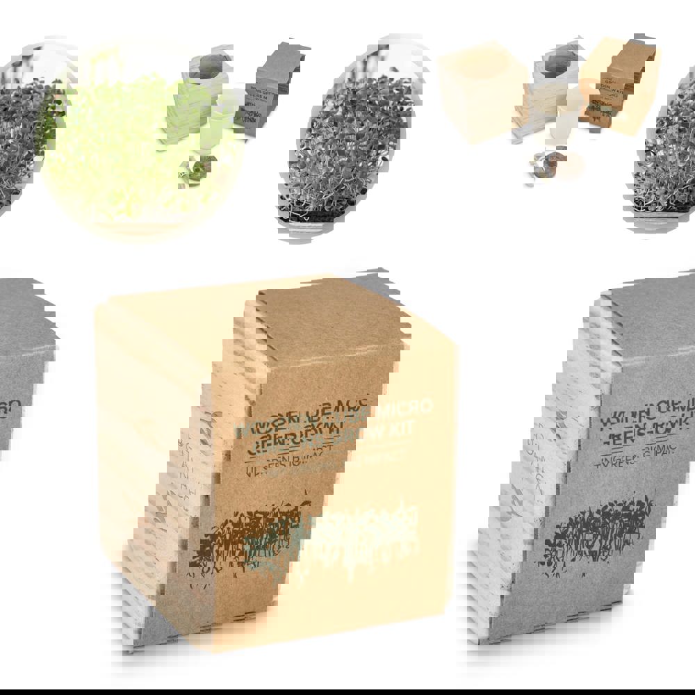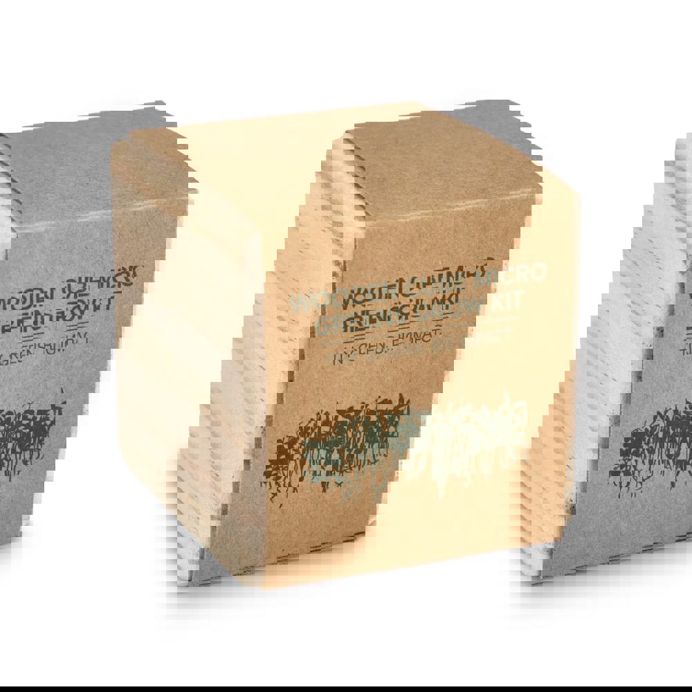 Kleine groenten. Grote impact! Energie, vitaliteit en gezondheid in een doos: met deze plantenkit kweek je microgroenten met behulp van kokosvezelgrond. Een duurzaam cadeau dat laat zien hoe kleine beginjes een grote impact kunnen hebben.