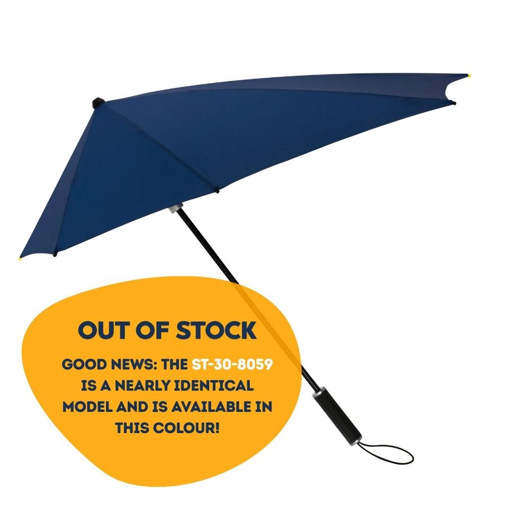 STORMaxi aërodynamische stormparaplu. Deze paraplu is getest in een windtunnel en trotseert gemakkelijk windsnelheden tot 100 km/h.