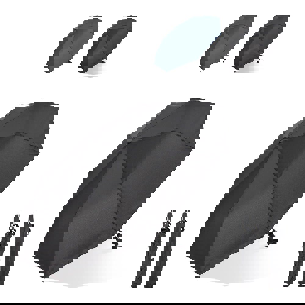 Deze 21" vouwparaplu is bestand tegen wind met een fiberglas frame en Pongee doek. Automatische opening en sluiting. Inclusief hoes en koord aan het handvat voor extra veiligheid. Het ABS-handvat zorgt voor een comfortabele grip.
