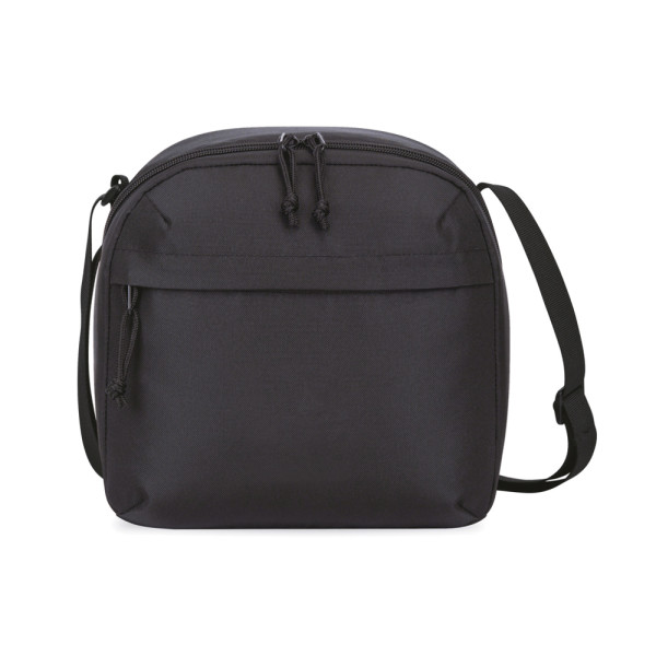 Een moderne en duurzame update van een klassieke lunchtas, gemaakt van gerecycled stof en webbing van plastic flessen. Voorvak met rits voor het opbergen van accessoires. Dubbele ritsopening in een schuine hoek naar het geïsoleerde hoofdcompartiment. Verstelbare, ambidextrous schouderriem voor gepersonaliseerd dragen. Geschikt voor 9 blikjes. Beschikbaar aan beide zijden van de Atlantische Oceaan. Dit item wordt in de VS en Canada ook aangeboden door Gemline.